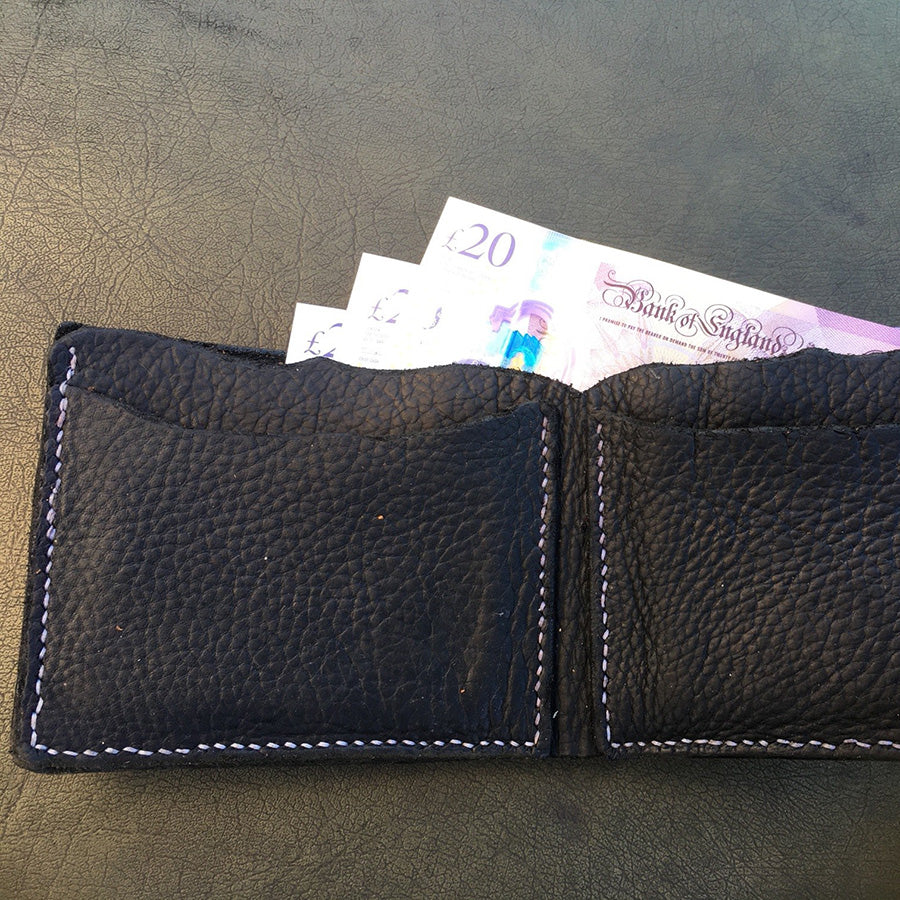 If you would like the wallet personalised, please select the option to have your two initials hand carved on the inside bottom left, in Old English font.