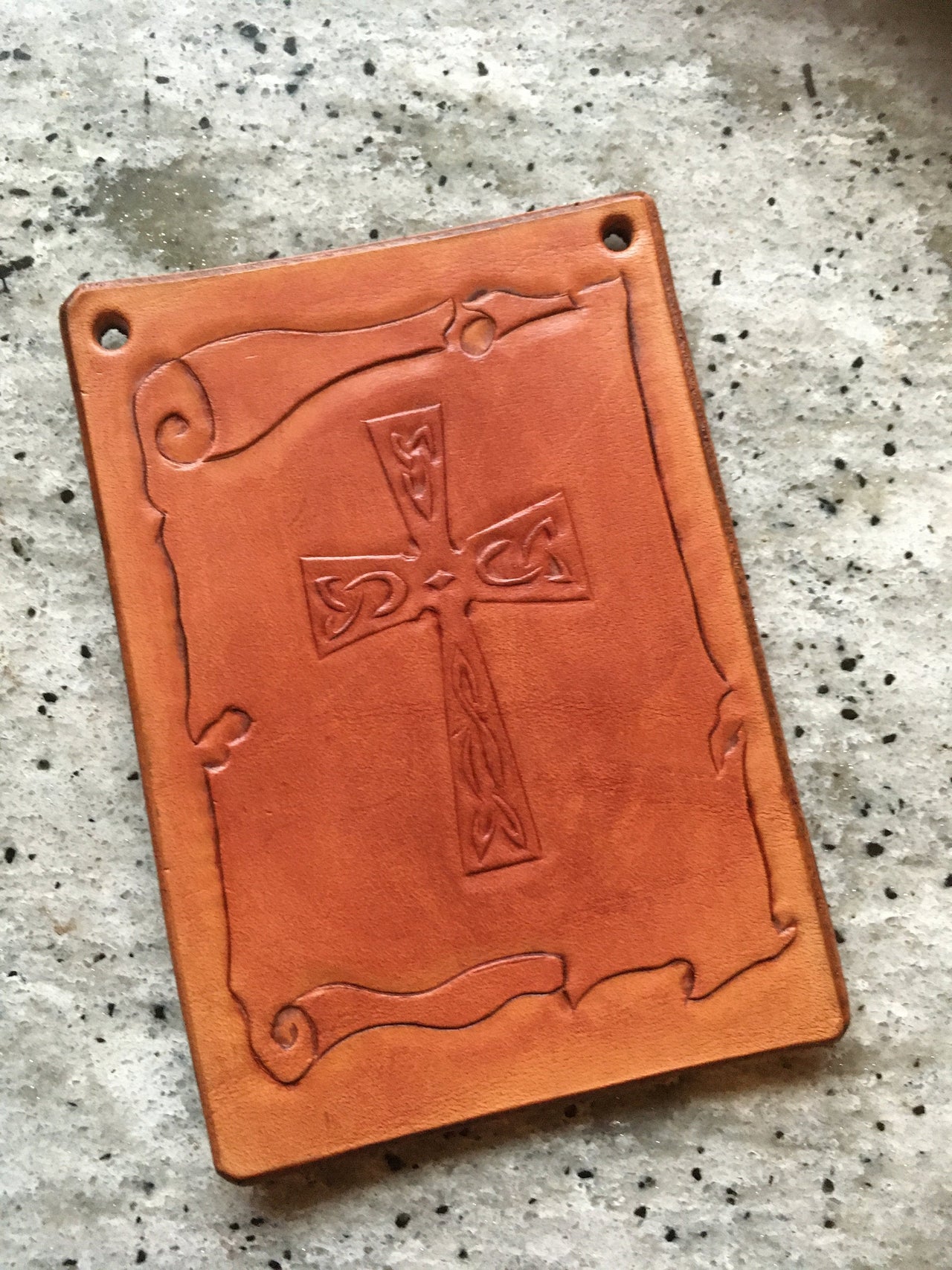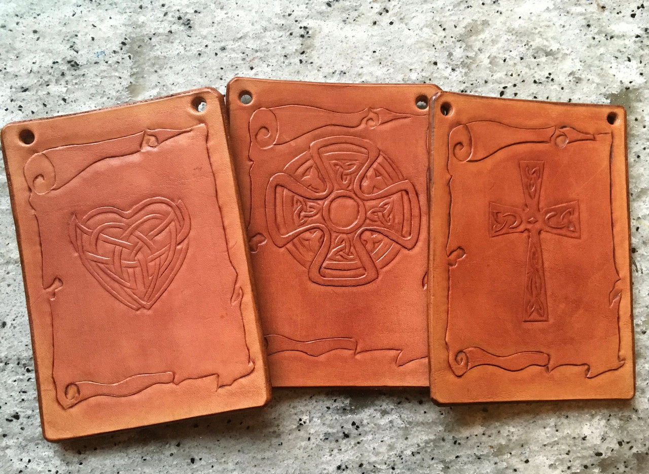 Cornish, Gaelic Celtic Crosses and Knot Work, Hand Carved on Miniature Leather Tablets